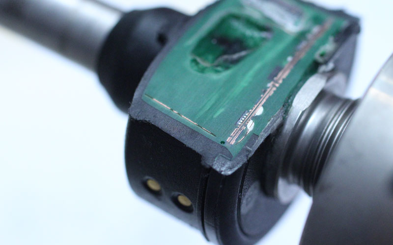 - The sensor shell made of a shock-absorbing plastic polymer reinforced with fiberglass.