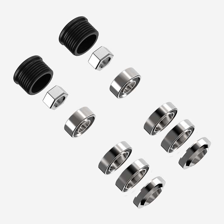 Set of bearings, M6 hex nuts, oil-seal and end-cap for the bePRO pedal bodies: left and right.